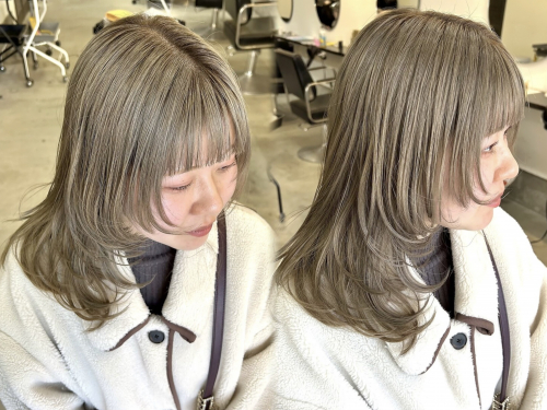 顔周りレイヤーで一気に今っぽく顔周りにレイヤーを入れることで、動きと軽さがプラスされ、カラーの透明感がより引き立ちます