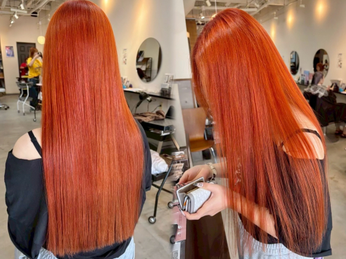 今回は、艶感たっぷりのオレンジカラー×スーパーロングのご紹介。